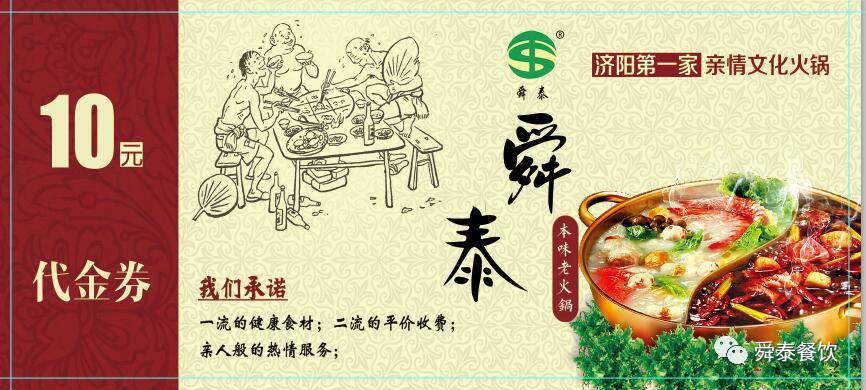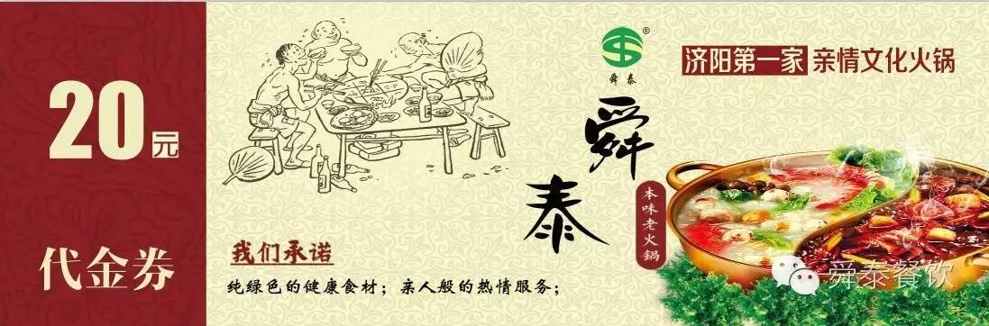 "舜泰火锅"就餐满一百元菜金送20元代金券