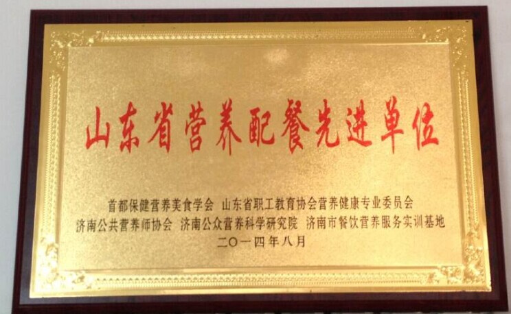 被评为“山东省营养配餐先进单位”
