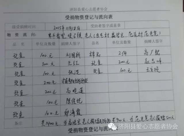 2015年11月17日下午,齐鲁晚报的记者找到济阳县爱心志愿者协会,为垛石镇东屯村高培宝老人寻求爱心救助。了解详情后,协会立即为老人呐喊并于18日下午赶赴老人家长探望,送去爱心物资和善款。会员顺道看望了卧病在床的范光尧老人。