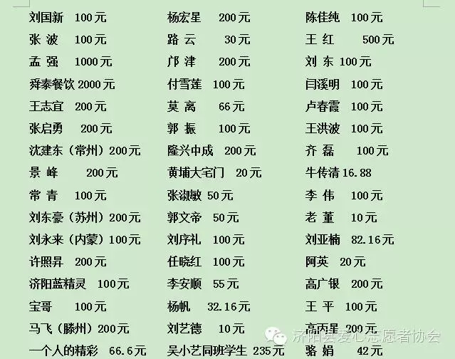 感谢各界爱心人士和会员!谢谢你们的无私捐赠!