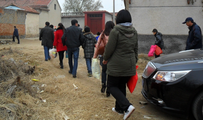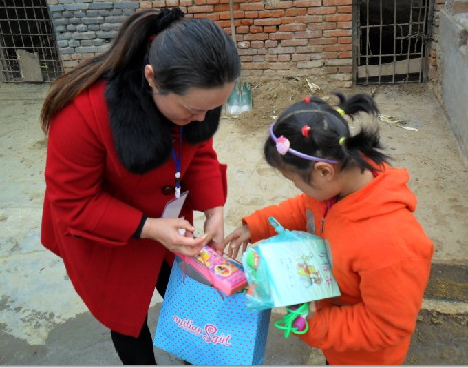 2012年11月25日,来到崔寨镇孔家村李乐的家中,给孩子送去书本和文具,还有漂亮的衣服等等。