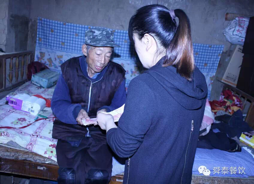 舜泰职工代表和会员将善款交到李振孝手中,希望老人能改善生活,感受到人间的温暖。